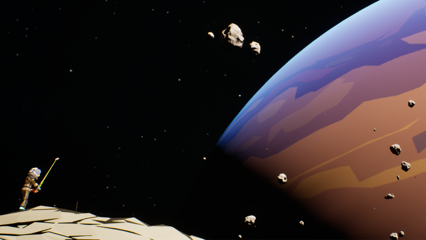 Cast your line from your cozy asteroid home and reel in Space Fish, each with their own unique feel! Sell catches, upgrade gear, and tackle legendary fish with unique challenges when reeling them in. Customize your asteroid home! Because nothing says “Gone Space Fishin” like a well-furnished rock.