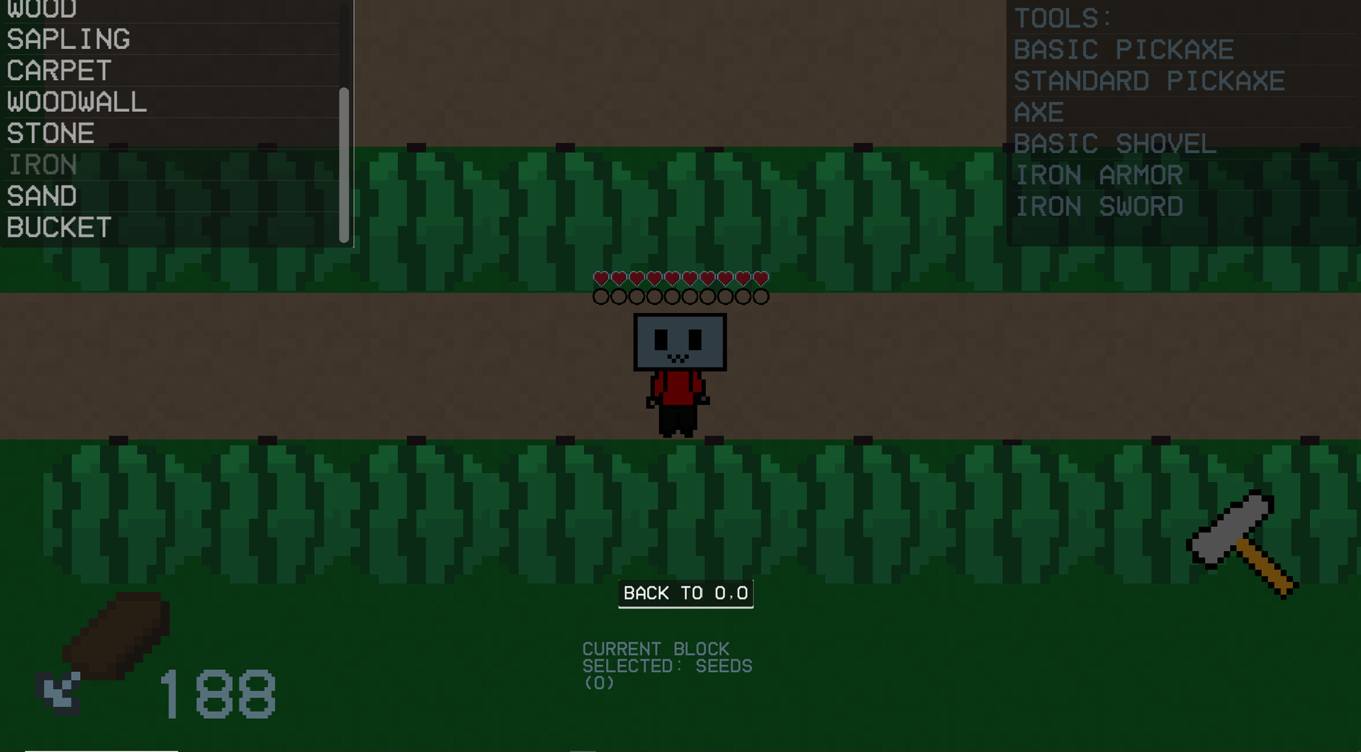 Minibuilder is a 2d top-down sandbox game with infinite, procedurally generating worlds. Defeat and protect yourself from enemies, acquire materials, build with both solid and decorative tiles, forage for food, make tools, fight a boss monster, and play with friends.
