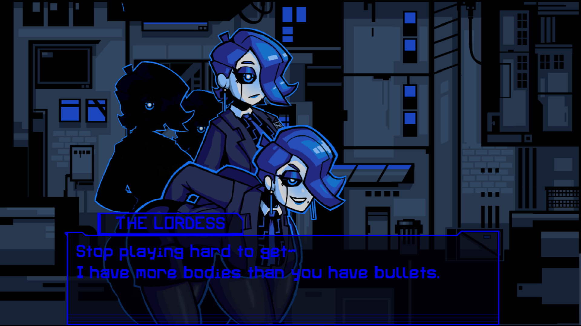 Year 2XXX: Pleasure is all that remains. Explore a ridiculous city and assemble a cyber-gal squad to defeat mankind's mother: an AI hivemind that gaslit everyone into blind worship. Killswitch Climax is an exprimental turn based/real time hybrid with visual novel style narrative.
