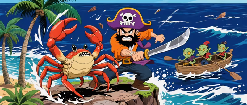 You play as a pirate captain, venturing deep into a cursed island in search of legendary treasure. Wield your cutlass, throw daggers, defeat guardians, collect gold and golden skulls, unlock chests to gather map fragments—but at the end of every sea, a deadly escape awaits.