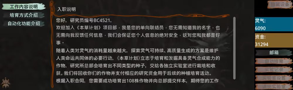 As a researcher, you'll receive sporadic emails from headquarters. Through tasks, rants, reports, and directives within these messages, you'll catch glimpses of earth-shattering secrets.
