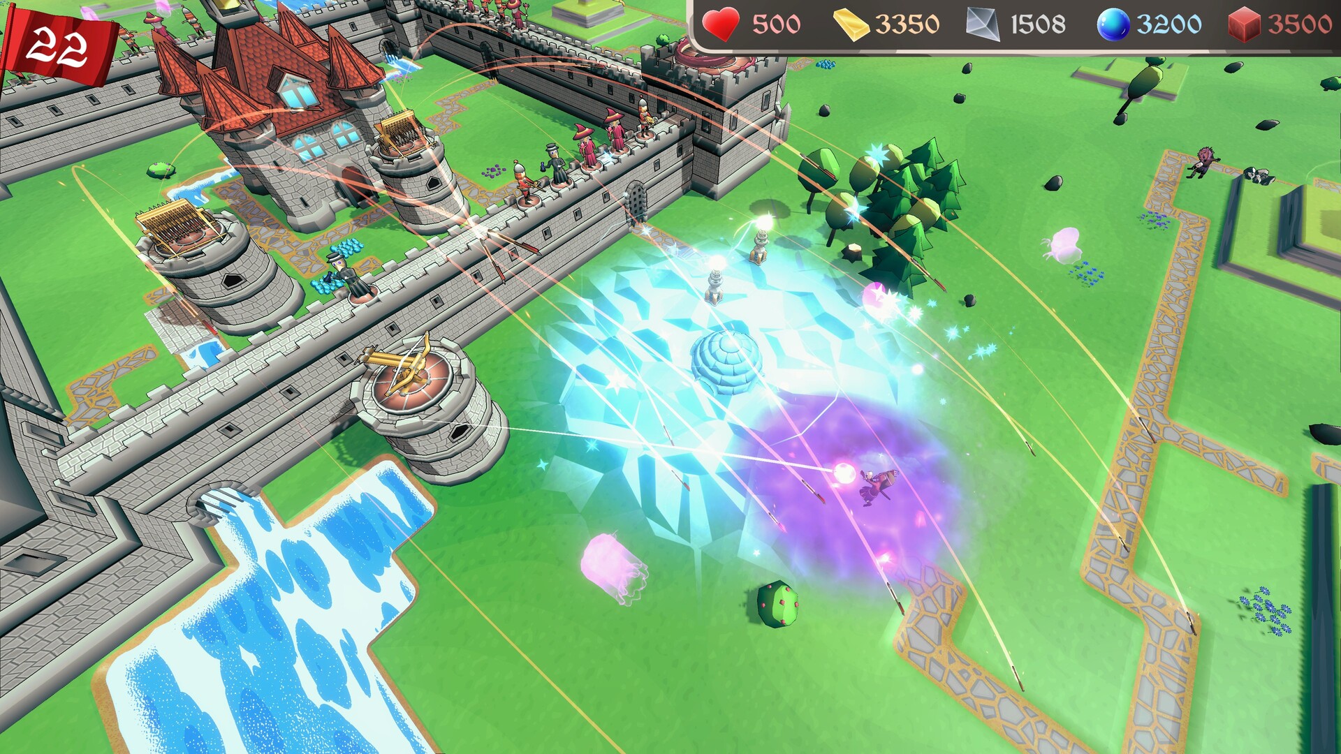 Castella is a Tower Defense Rogue-like, where you will build a fortress to defend yourself from hordes of monsters besieging your castle. During the game you will unlock and upgrade towers and buildings. You will build walls to block the path and defend your resources and town hall.