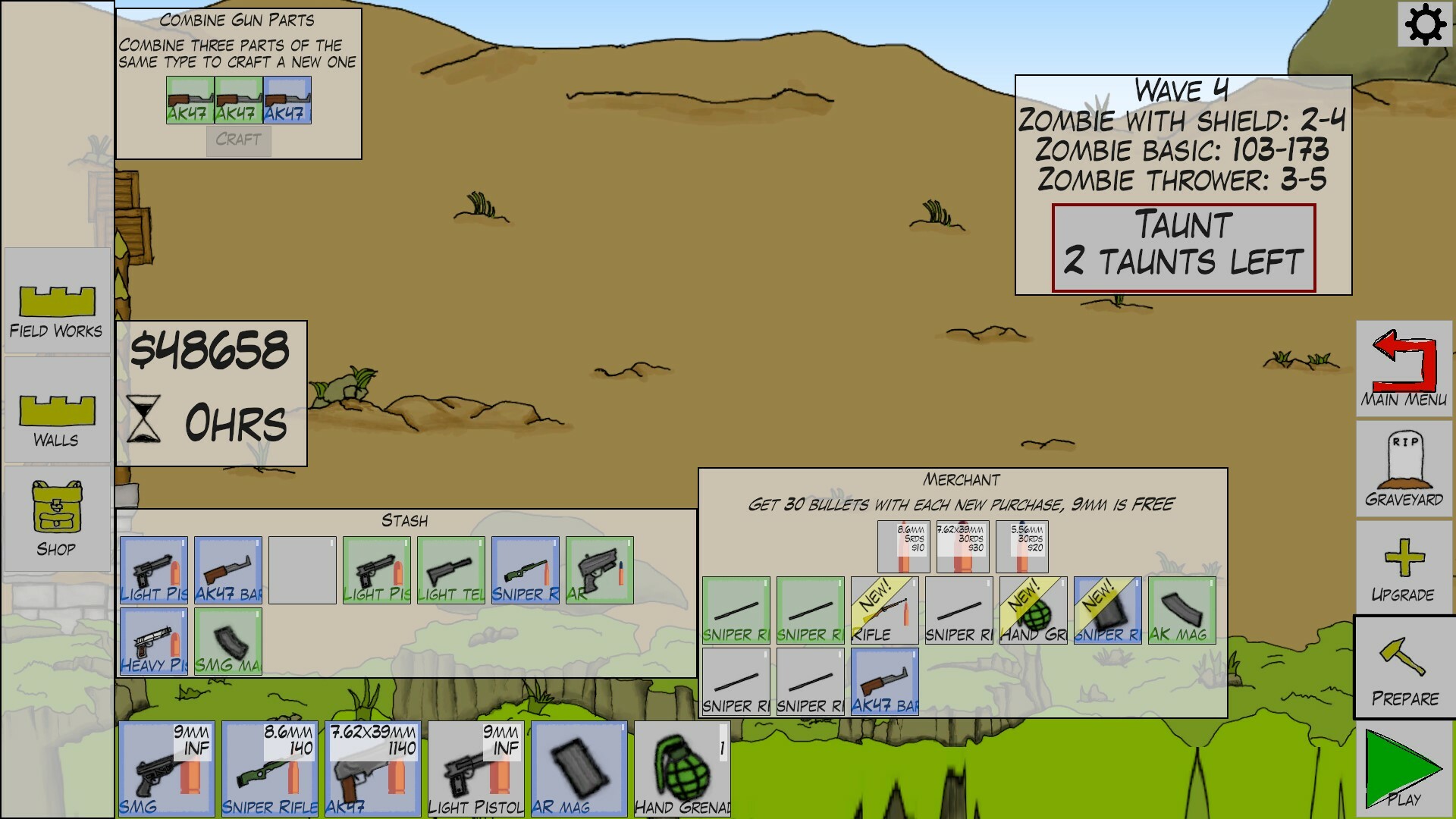 Shoot zombies, collect loot, build your own guns! Live a life, bury your hero in the graveyard, then use his XP to unlock more loot, more features, and more parts for your guns.