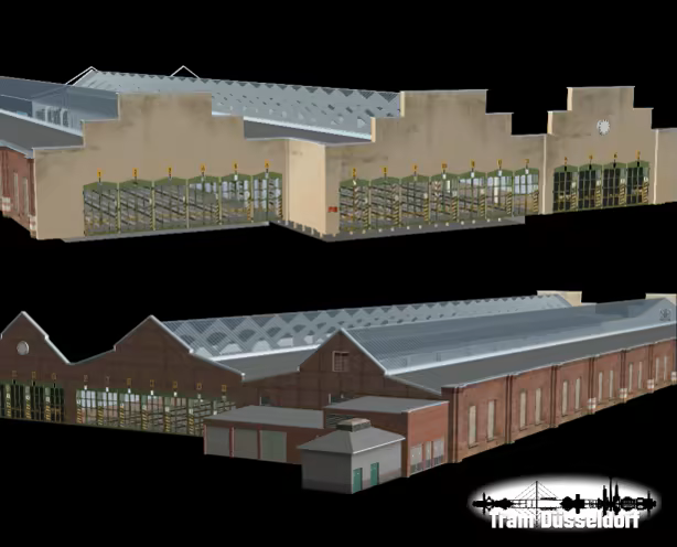 All the vehicles that are used on the three lines must of course also find shelter. In addition, we offer the depot at Am Steinberg, which has 17 tracks for the trams. Built in 1907, the hall has been preserved to this day and now offers a roof and pit for today's historic vehicles that were still in daily use in the add-on.