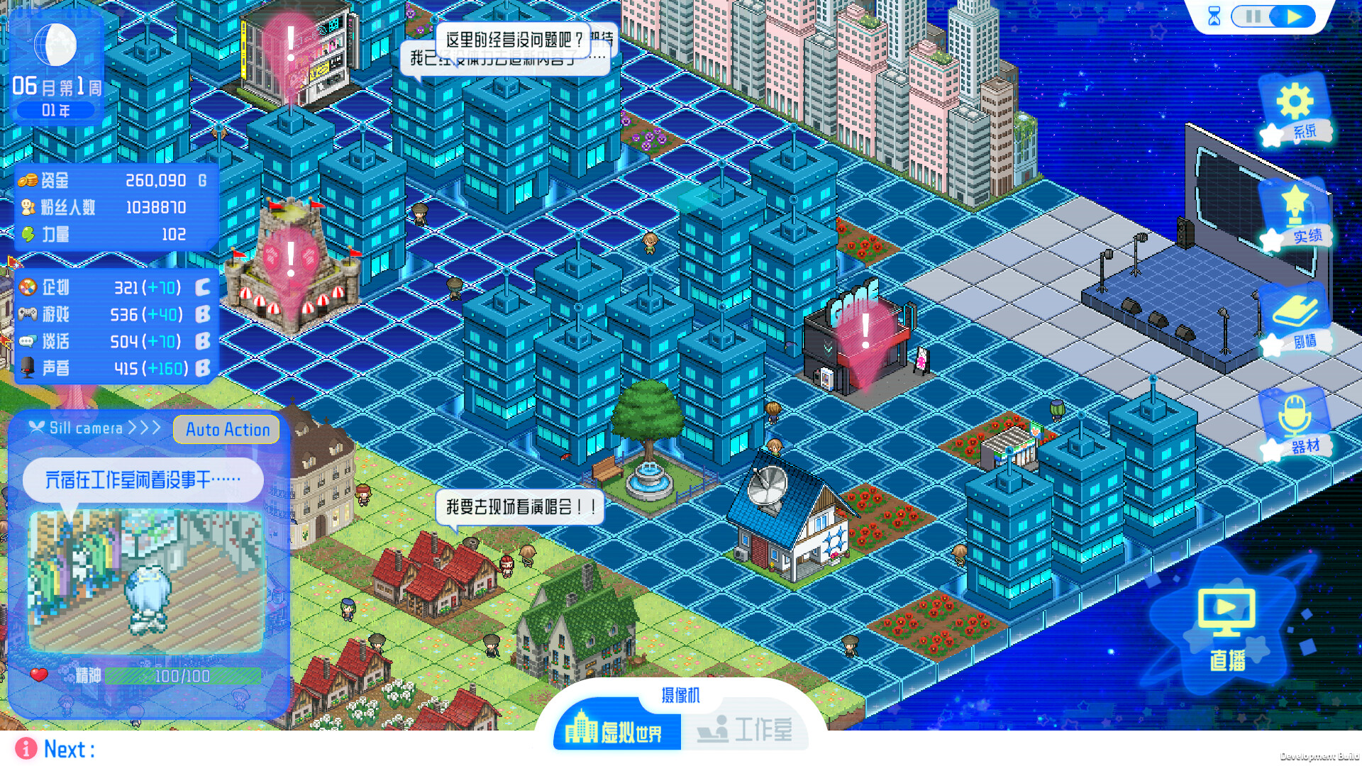随着粉丝的增加,新的剧情将会解锁,虚拟世界的重建也会推进,新的打工和设施等等也会解锁。