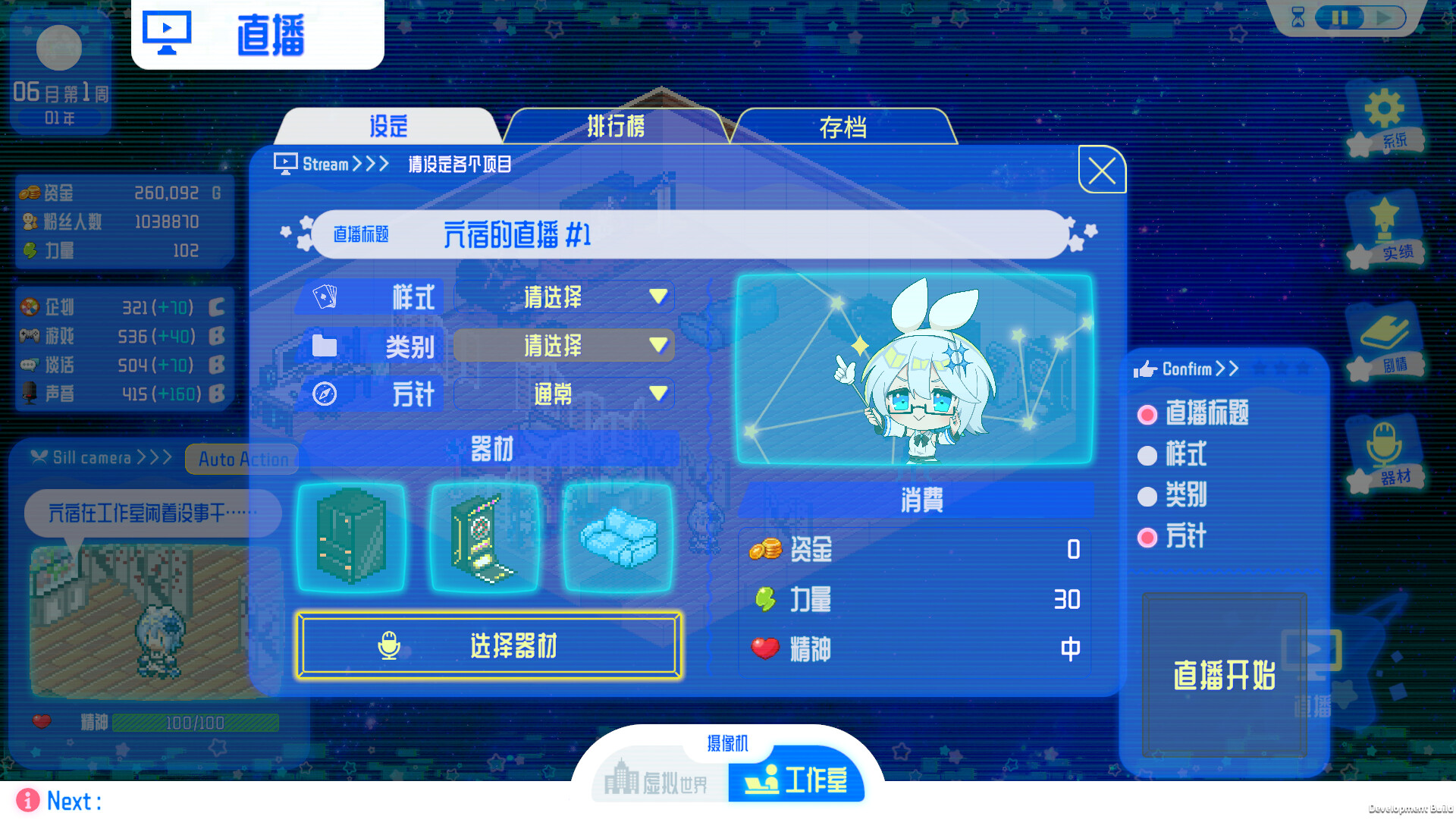 新感觉养成模拟游戏,布置房间是精彩直播的关键!