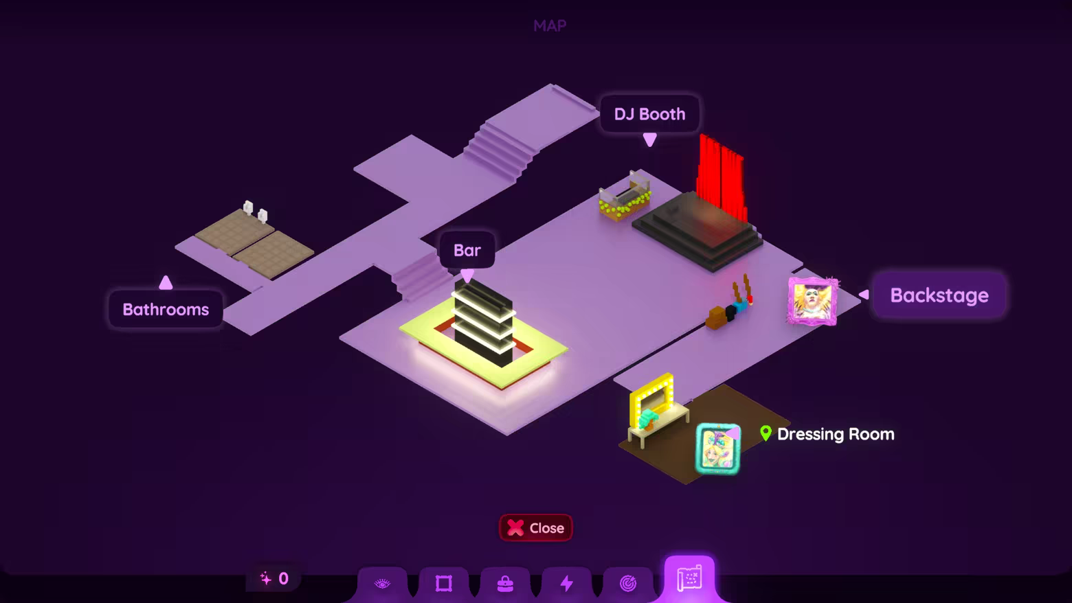 • Talk to and discover things about the characters at the disco.