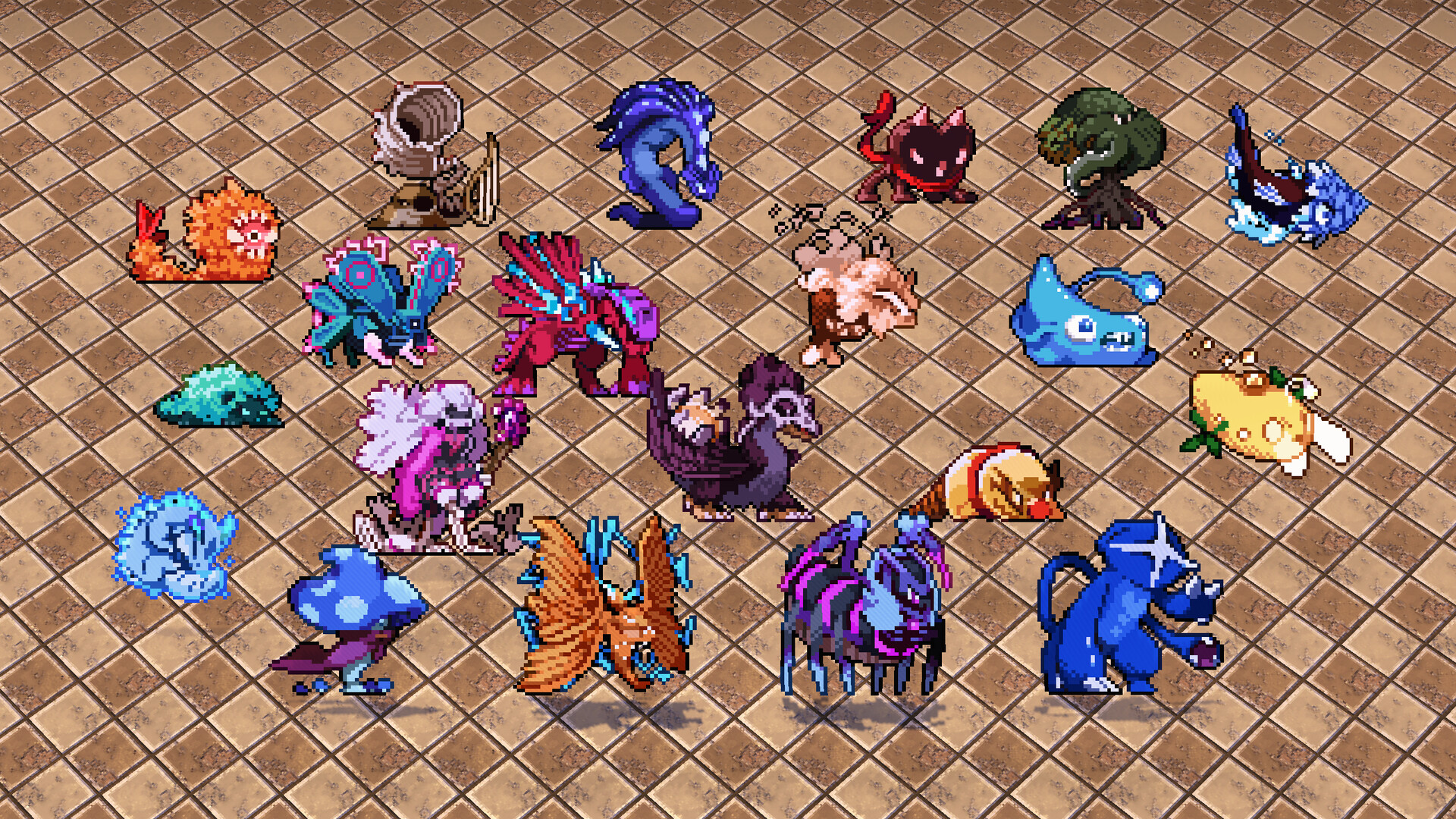 The fourth installment in the battle monster sprite series by pixel artist Mokemo. This collection features 20 uniquely designed monsters, each with its own intriguing backstory—from otherworldly abominations and emotion-infused fruits, to thunder-dancing birds and love-cursed shadows. Whether as formidable foes to challenge the player or mysterious beings that guide the story, these distinctive pixel art monsters will bring greater depth and vivid color to your game world. Let your imagination run wild and enhance your game's atmosphere with these captivating characters.