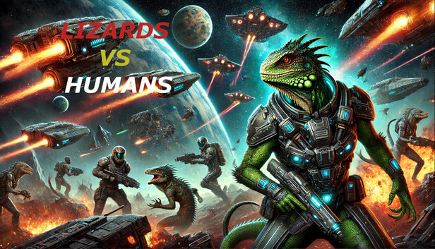 Choose your side in an epic conflict spanning frozen moons, abandoned stations, blazing deserts, and futuristic cities built in craters and valleys. Will you stand with humanity, defending its last colonies in high-tech power armor? Or embrace the primal fury of the Lizard People, reptilian warriors wielding plasma-edged blades and biotech weaponry?