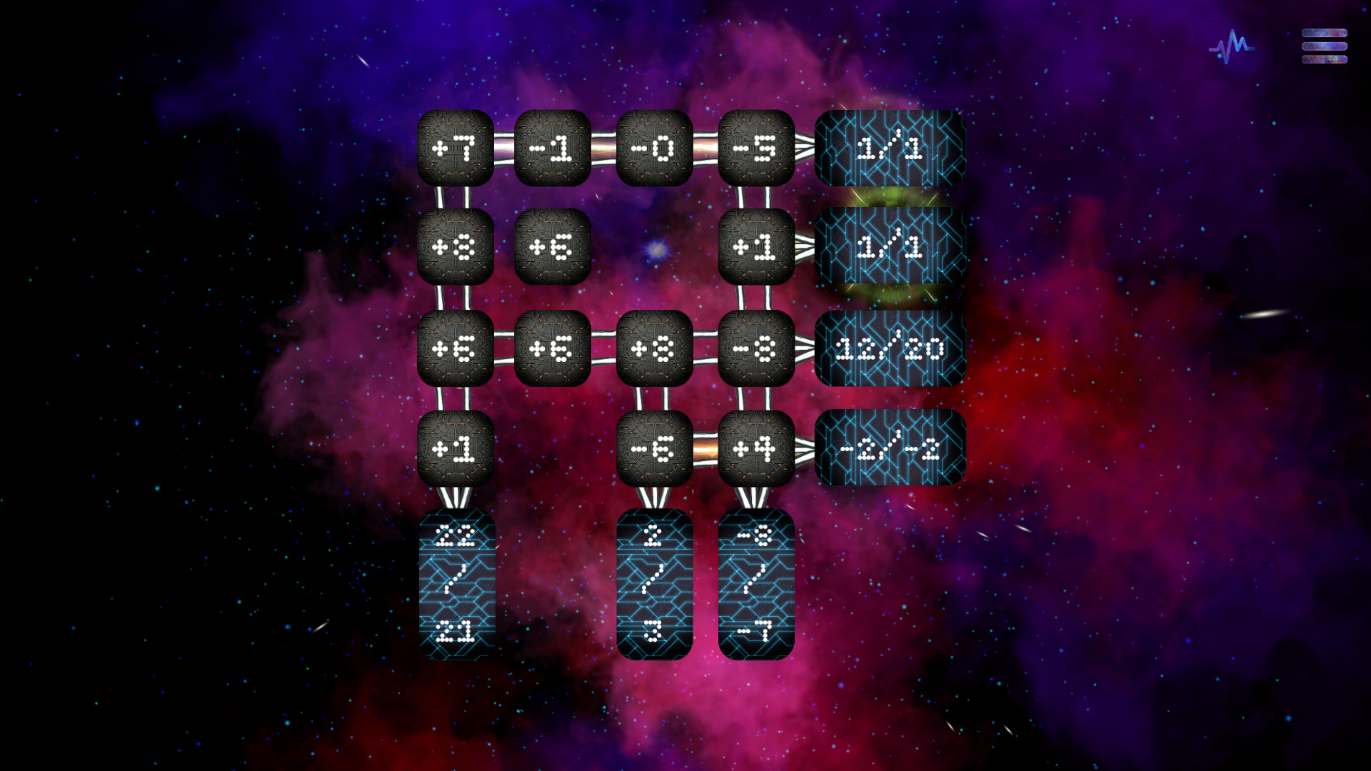 During a mission your spaceship encounters an unknown anomaly and all systems fail. You have to balance the energy in order to get them running again and to get home safely.