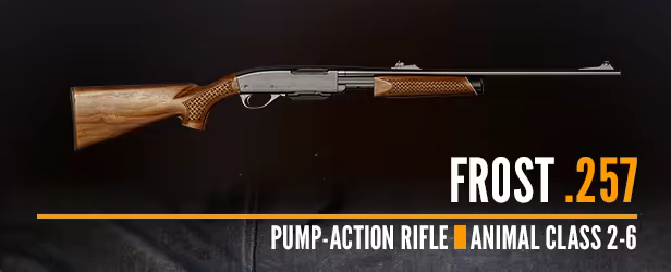 The reliably accurate Frost pump-action rifle is the perfect example of high-powered, smooth functionality. With its rapid reload magazine chambering in .257 ammunition, it presents a unique loadout option for hunters looking to switch things up. It’s also a complementary choice when hunting a wide variety of medium-sized game.