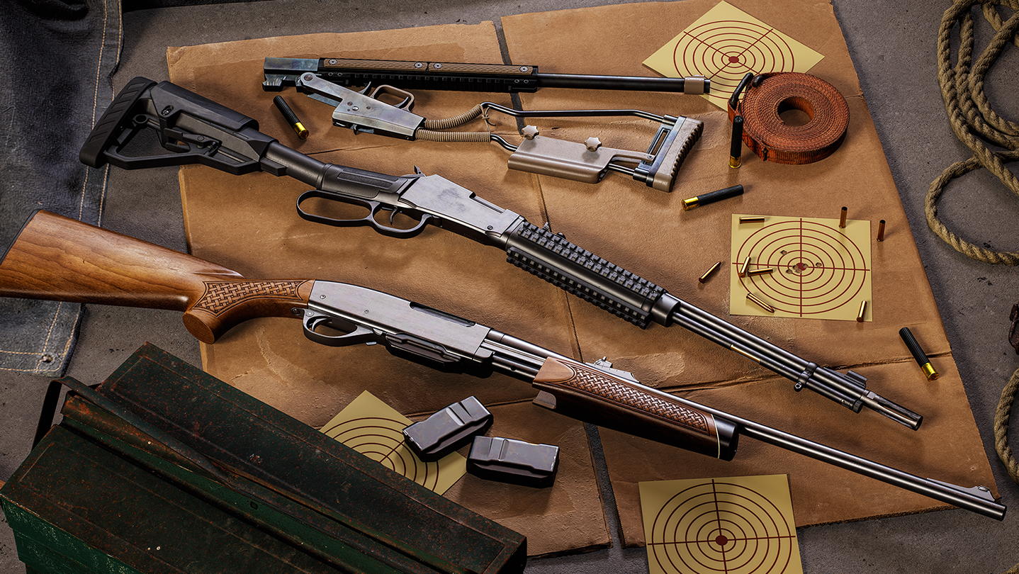Pump, flip, unfold, and fire with 3 tactile hunting weapons. Featuring new takes on classic favorites like the lever-action rifle, fast-loading pump-action rifle, and the lightweight portable folding shotgun, hunters will appreciate the versatility this curated firearm collection brings to their loadouts.