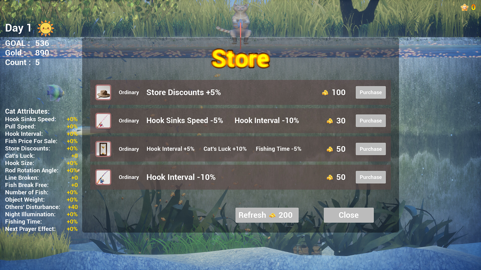 Each round has a clear gold target. Catch fish to automatically sell them for coins—but watch out for pesky seagulls! They might swoop in and snatch your hard-earned catch!