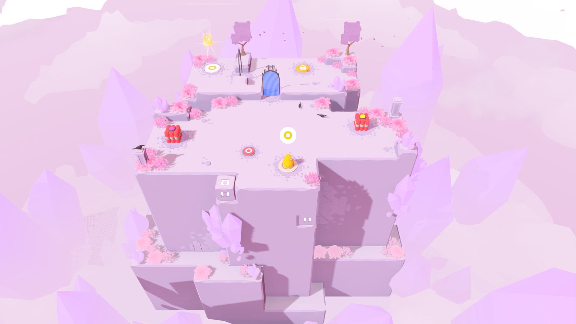 In some levels, you’ll encounter Buttons with various effects. Some let you Invert your stack's colors, others make you Grow or Shrink, and some even spawn new nesting dolls. The possibilities are almost endless! Certain buttons also open doors  — or even open up other nesting dolls.