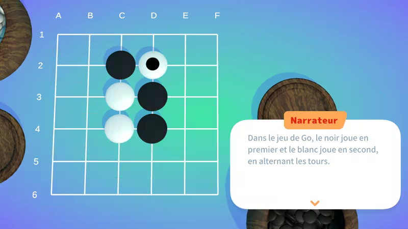 Dans le Chapitre 1, vous apprendrez les règles et les bases, tandis que le Chapitre 2 à venir (le dernier) vous proposera des tactiques avancées et des leçons sur un plateau 19x19.