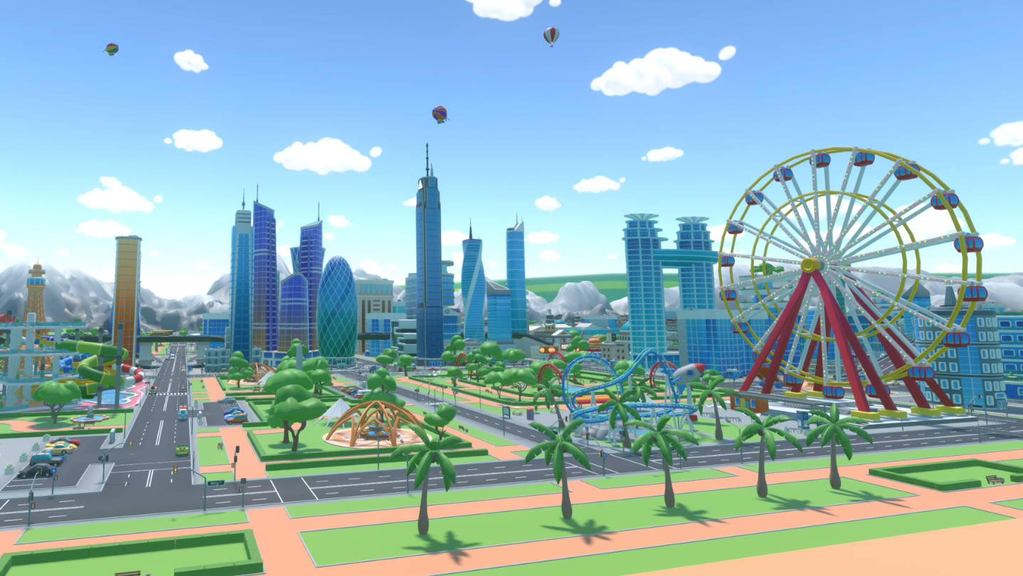 🎨 Stylized low-poly 3D visuals with a colorful city vibe