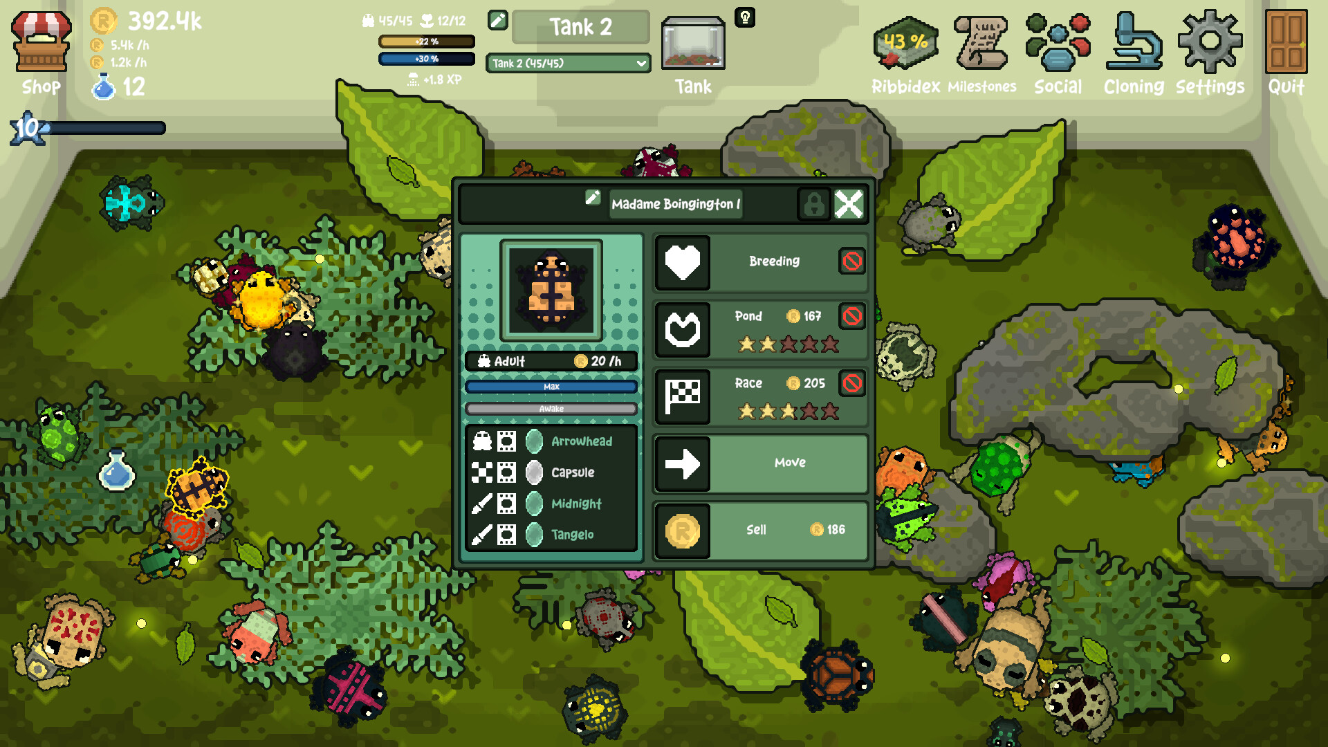 Ribbit Ranch is a cozy idle game where you unwind while you collect and care for frogs. Raise these frogs and sell for them for a profit or keep them around to use in mini-games, breeding and to passively generate money!