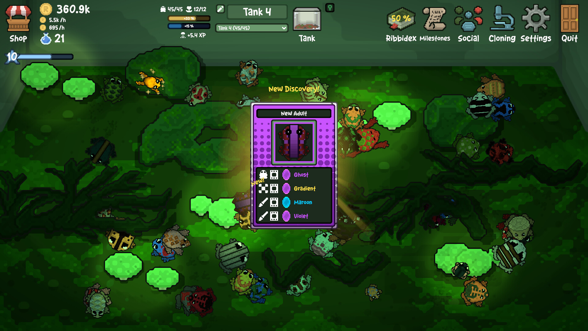 Ribbit Ranch is a cozy and relaxing idle game. Collect frogs and raise them in real time, then sell them to earn a profit! Customize your habitats by filling it with decorations, rare frog species and ultra-rare special frogs!