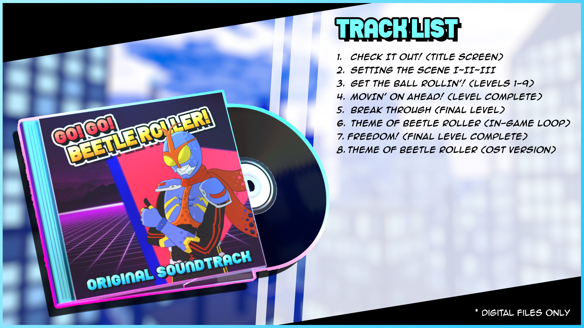 Keep it rolling with these groovin' tunes from the official OST of GO! GO! Beetle Roller! Cereza64's first video game soundtrack, including the exclusive full Theme of Beetle Roller. Album cover artwork illustrated personally by Cereza64.
