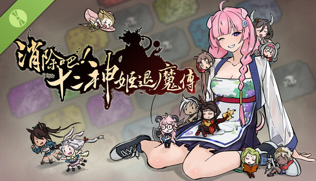《消除吧!十二神姬退魔傳》是一款結合「三消」與「構築」的Roguelike策略遊戲。你將攜手12位生肖娘,協助她們抵禦來自上古凶獸的入侵。遊戲中有豐富的隨機事件、戰鬥、強化等選項,謹慎選擇前進路線、合理分配資源,讓生肖娘變強是戰勝敵人的關鍵。