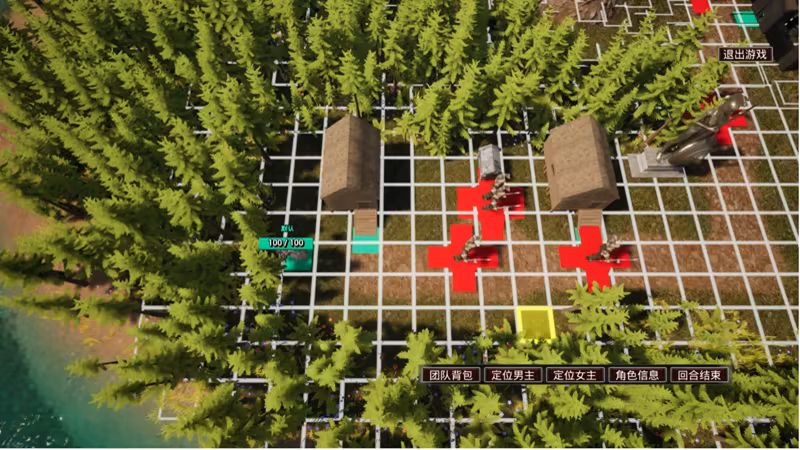 2.游戏中有大世界,大世界中移动的模式和在小世界中的移动模式相同,通过点击绿色的角色移动,移动完毕后,会无法再次移动,需要点击定位男主或者定位女主,则可以继续移动。在大世界中有绿色小方块的建筑格子,进入后可以在背包界面中招募自己需要的队友,和装备。在大世界中可以自由的通过团队背包在各个队友之间交换装备。在大世界中有红色的格子的战斗点,进入后会进入小世界和敌人展开搏斗,另外有几个特殊的红色战斗格子不会因为战斗胜利而消失。