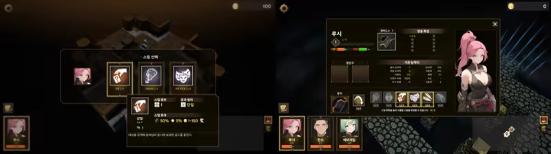 모집한 동료들의 스킬, 방어구를 강화하세요.