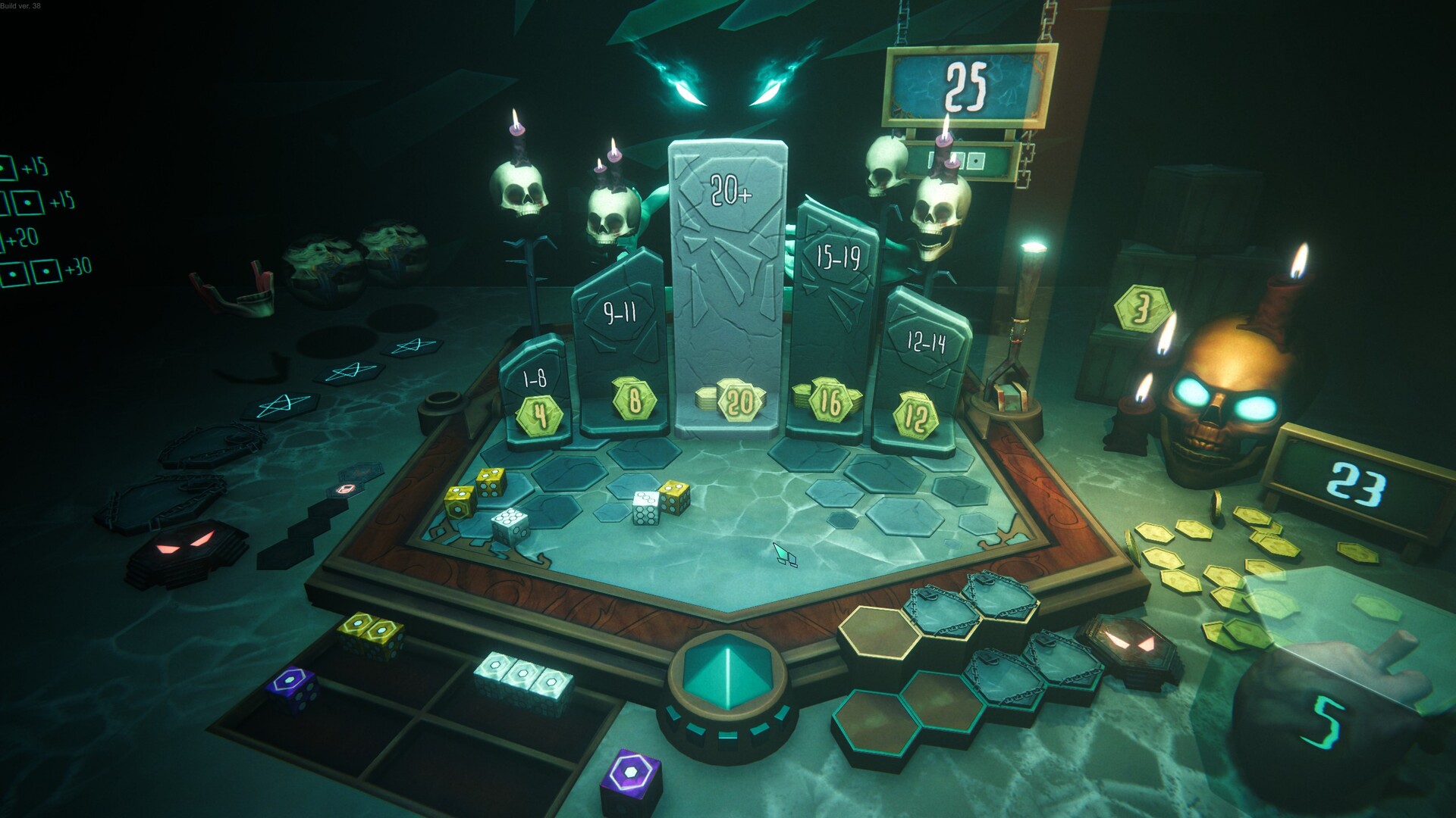Nutze unheilvolle Gegenstände, Relikte und schmutzige Tricks, um die Regeln zu deinen Gunsten zu verbiegen. Wirf im perfekten Moment neu, manipuliere Ergebnisse, schütze deine Hand oder durchkreuze die Pläne des Todes vor dem finalen Aufdecken.
