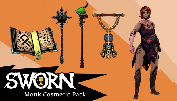 Harness the divine with the Monk Pack’s four distinctive weapon skins — Morningstar Mace, Alchemist’s Staff, Sacred Tome, and the sinister Demon Chime. The Heretic Outfit marks you as a renegade monk who defies tradition.