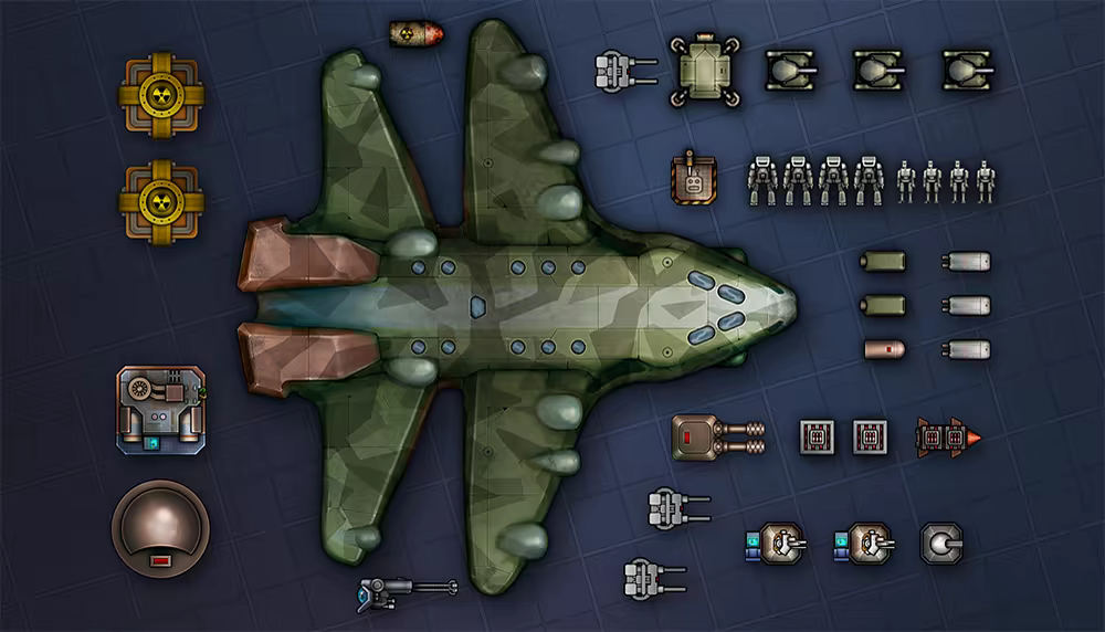 While the vessel is loaded with rockets, missiles, drones & nukes, there is naturally a downside. Most of the non-combat modules are missing or replaced with something (it's even missing a functional warpdrive). The player has to craft obtain these via crafting or otherwise for a fair chance of survival in the depths of space.