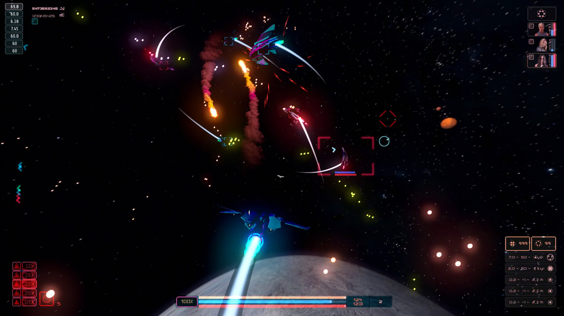 Spaceship combat sim arcade shooter. Roguelike and other gamemodes. Character collection.