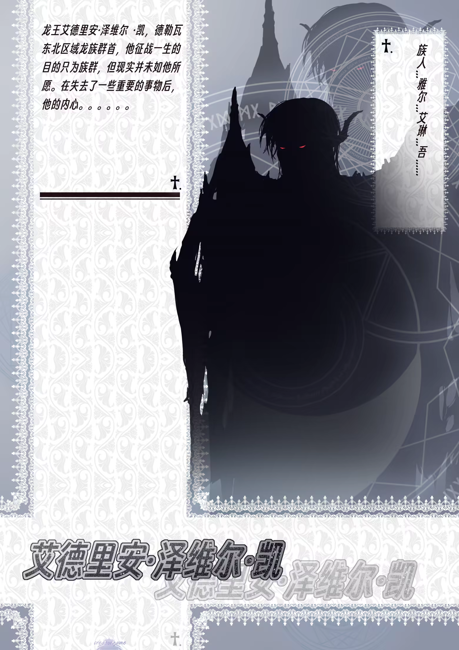 This man was betrayed in his youth and nearly killed. Homeless and at his wit’s end, he wandered to a riverside, overwhelmed with despair and ready to end his life. At that moment, he encountered the Dragon Clan’s leader — Yael’s father — who was fighting nearby. His fate changed completely. He spent many years in the military camp, growing close to Yael’s father, considering him like a brother.After the upheaval of war, he succeeded as the captain of the Dragon Knights. When the clan was nearly destroyed, and he saw the brother who had once fought by his side now utterly broken, he was overwhelmed with profound sorrow. For that man, for him, and for everything around them — what decision will he make...?