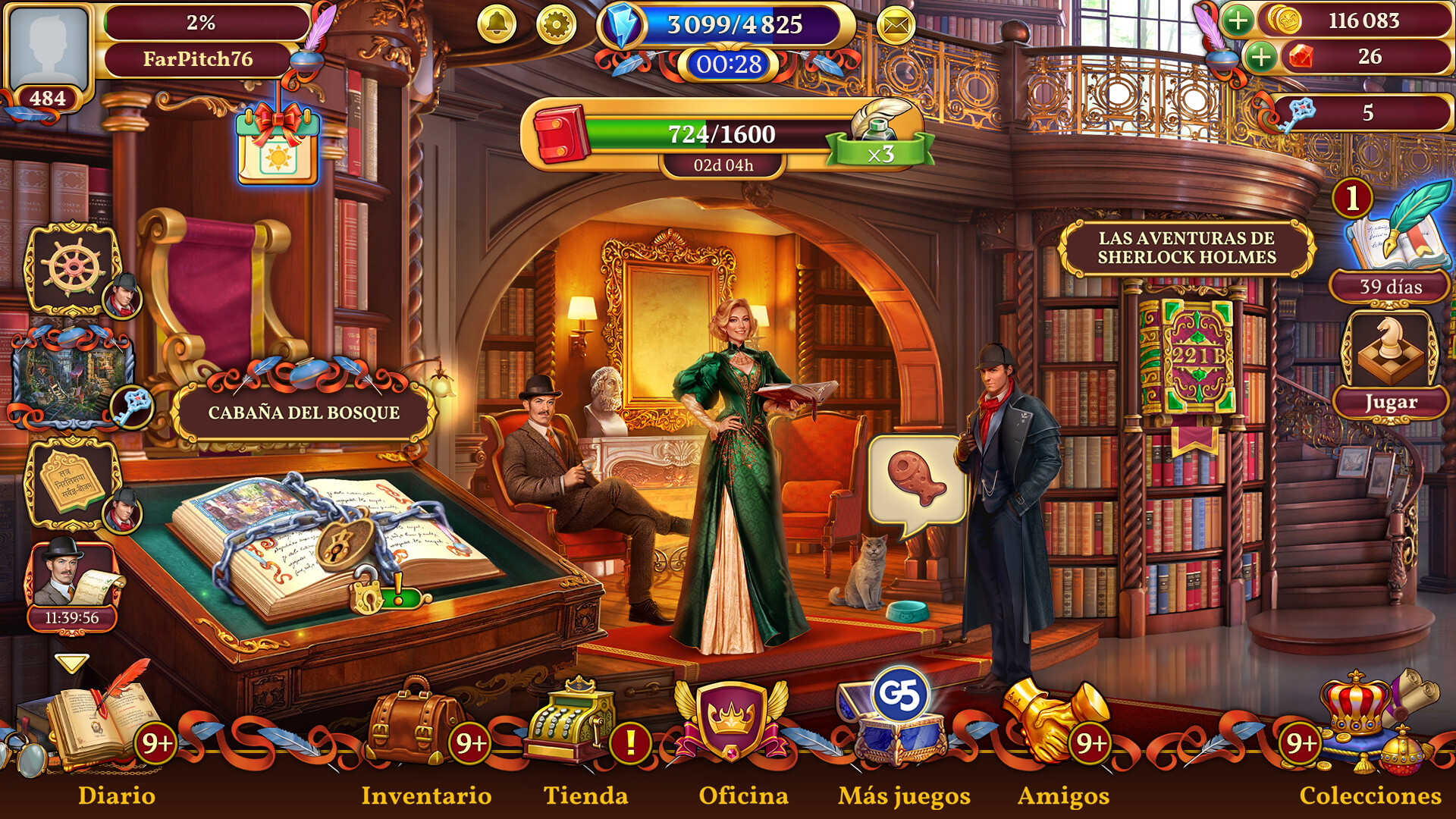 Adéntrate en un mundo en el que los clásicos se sumen en el caos. En Sherlock Holmes: un misterio lleno de objetos ocultos y combina 3, alguien (o algo) está alterando los finales de novelas legendarias. Ya no hay héroes, y los villanos toman el control. Trabaja con Sherlock Holmes y el Dr. Watson para descubrir lo que ocurre con estos misterios literarios y restaurar la verdad.