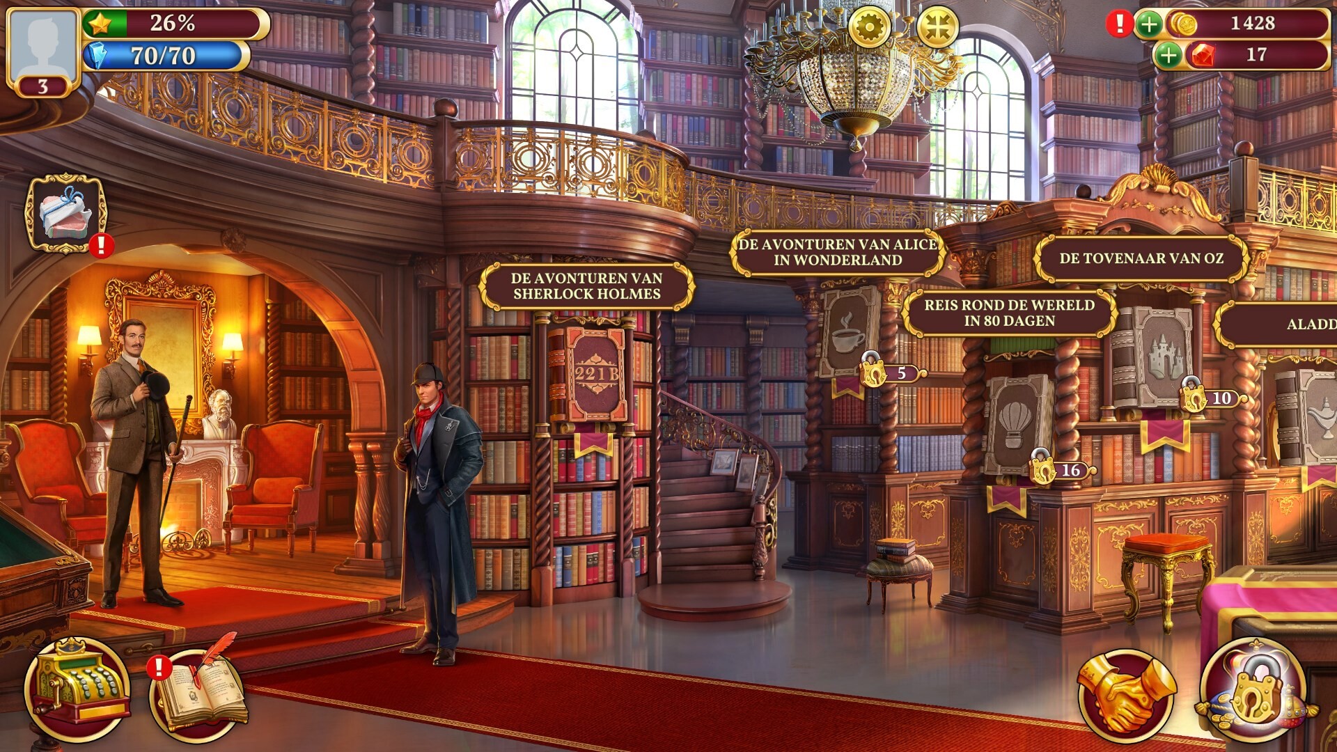Duik in een wereld waar klassieke verhalen in chaos veranderen. In Sherlock Holmes: Verborgen objecten en match-3-mysterie knoeit iemand - of iets - met de afloop van legendarische romans. Helden worden vermist. Schurken nemen de macht over. Werk samen met Sherlock Holmes en dokter Watson om te ontdekken wat er achter deze literaire mysteries zit en de waarheid te achterhalen.