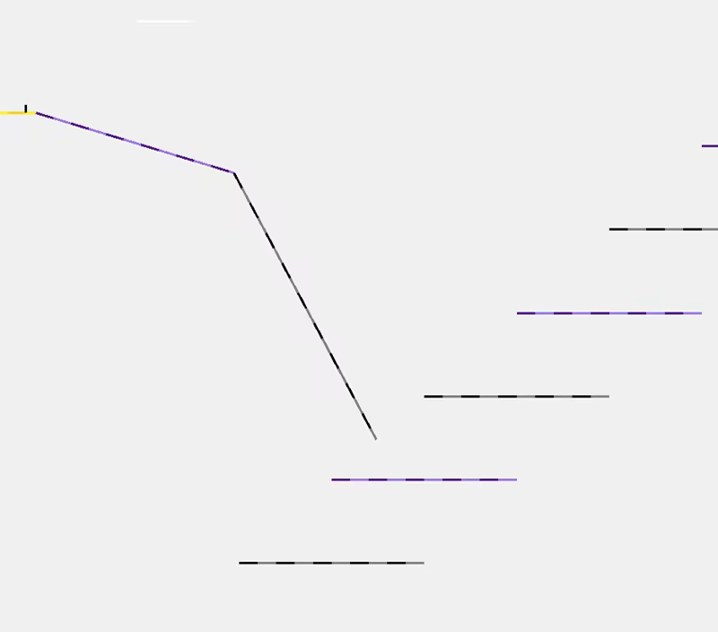Black and purple lines represent every-day obstacles that you can walk on, jump off of, and slide against. Red lines are enemies, and the goal of each level is to reach the green line. When you reach a yellow line, you get to see the full level from a 2D perspective for as long as you remain in contact with it; otherwise, you and Linus are on your own!