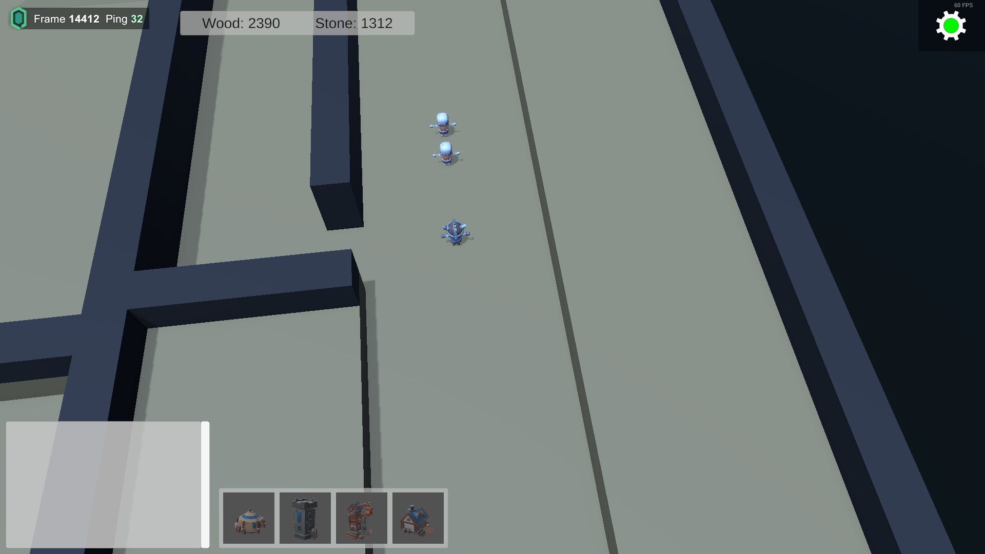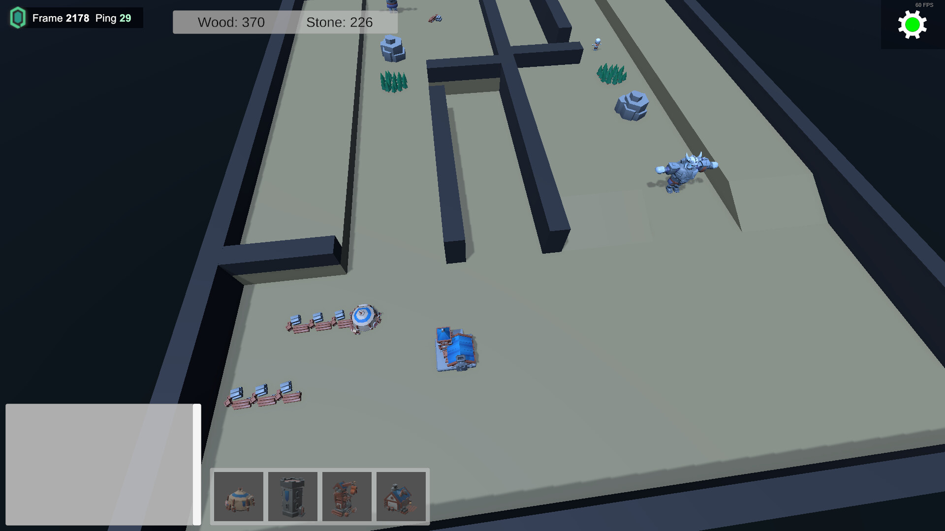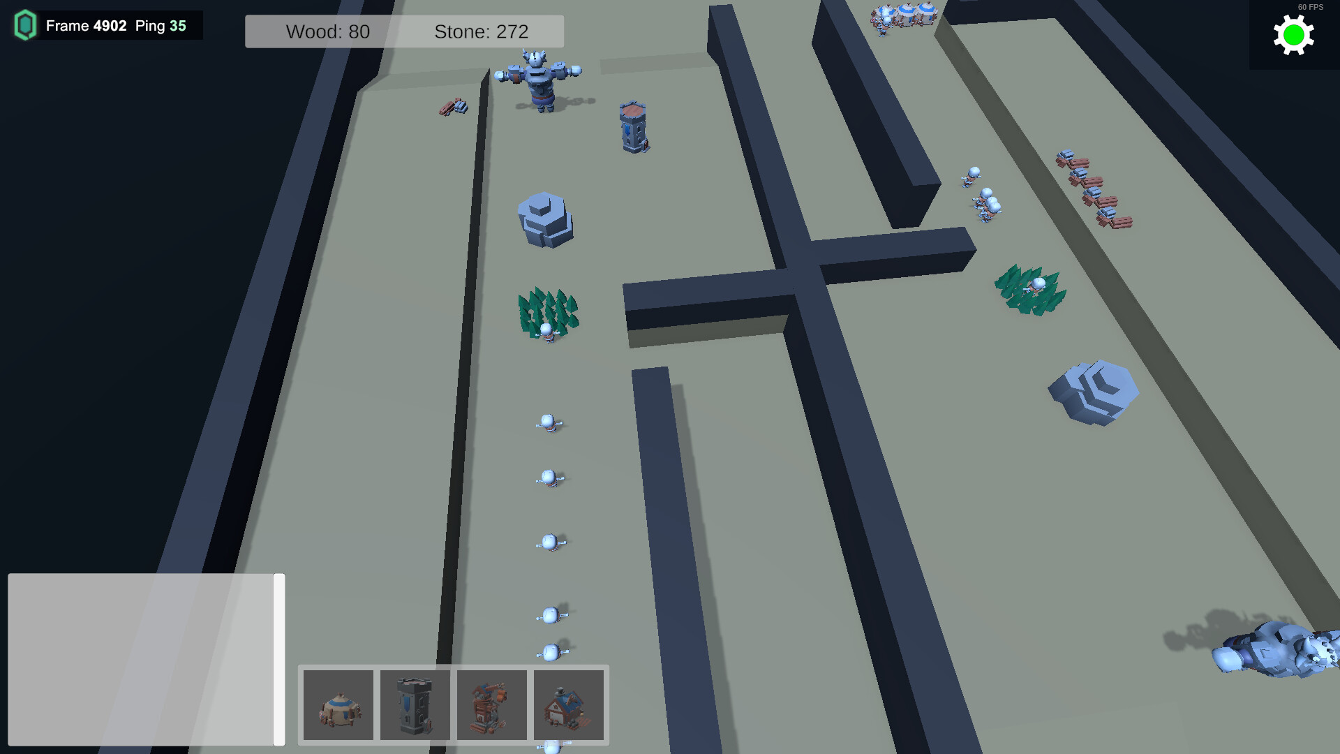The core of the game is base building. You place spawners that create economy and combat units, and build towers to defend your base.