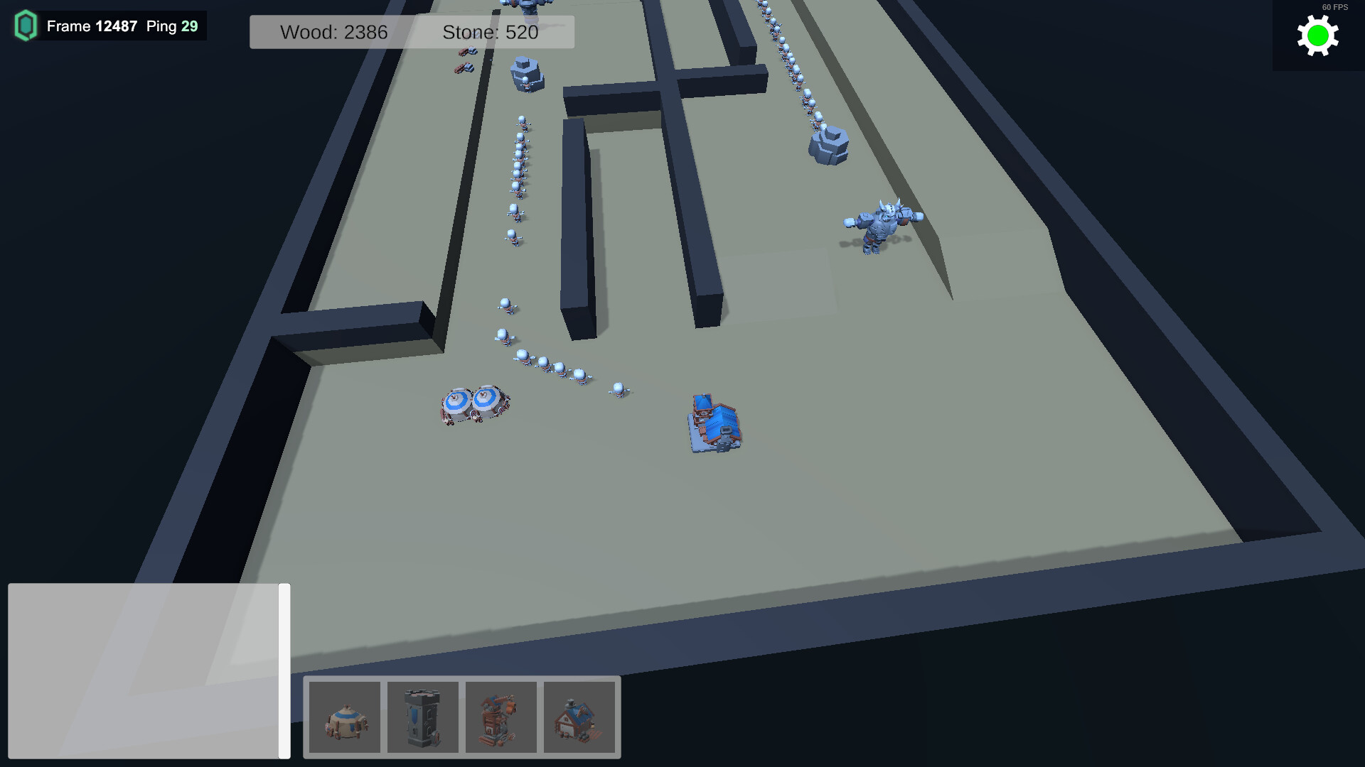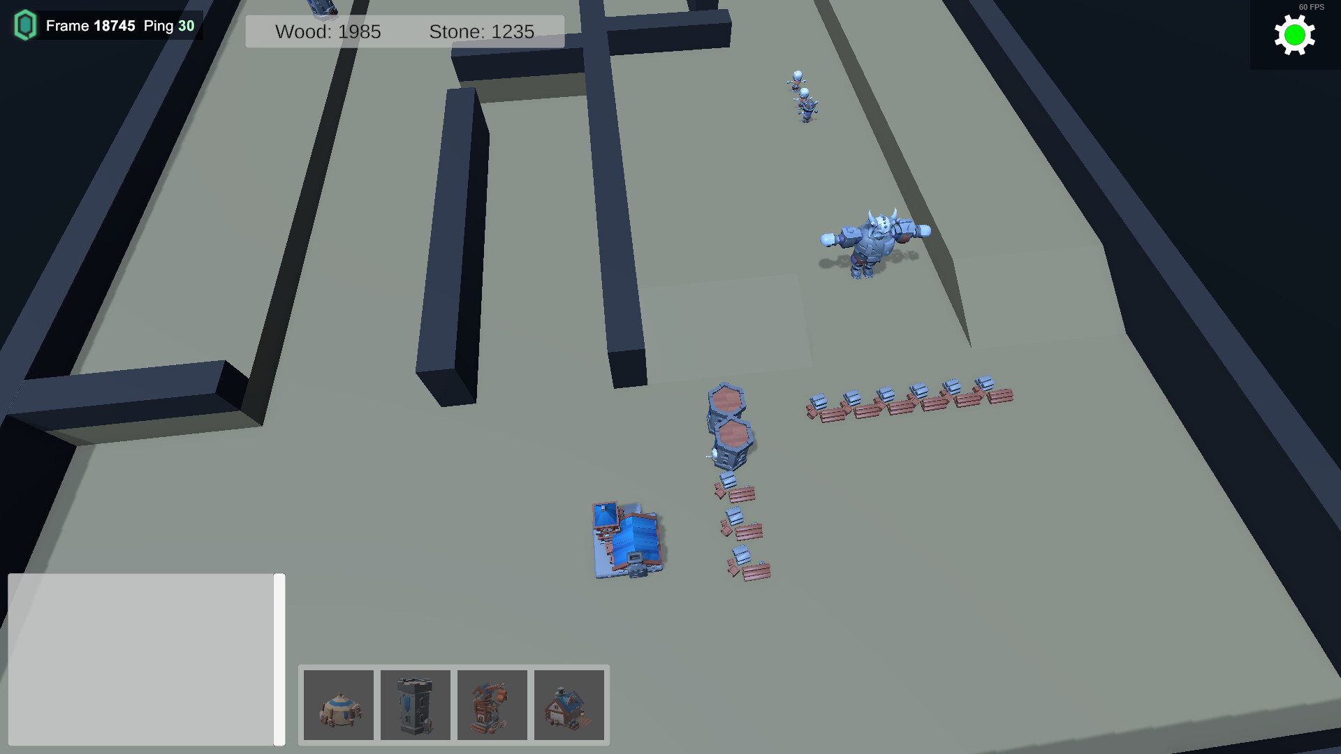 The core of the game is base building. You place spawners that create economy and combat units, and build towers to defend your base.
