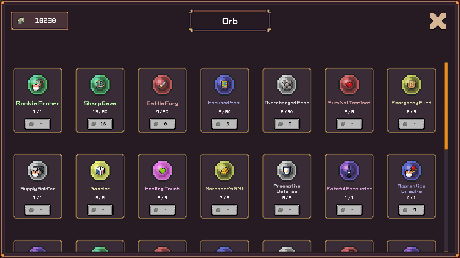 Usa los recursos que ganas en combate para mejorar Orbs y aliados héroes, para que la próxima vez puedas explorar más a fondo con más reliquias y compañeros más fuertes.