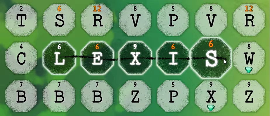Lexis is a strategic word game where each turn is a puzzle. Connect letters to form high-scoring words, find synergies and beat the challenging research tiers.