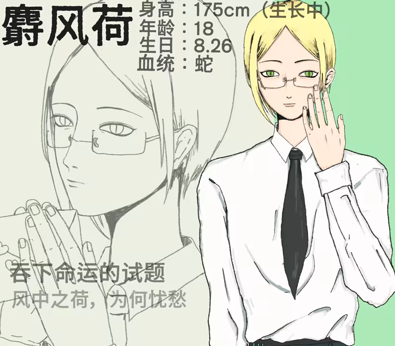 Meixing  Ji- He’s an orc with salamander-like abilities and can transform quite a bit. He’s a rich kid who just transferred to Orchid Middle School. His family doesn’t seem to care much about him, so he’s pretty quiet and shy. But don’t underestimate him—he’s incredibly persistent when he sets his mind on something. Once he latches onto you, it’s hard to shake him off. Kind of like morning glory vines that won’t let go unless... well, you know.