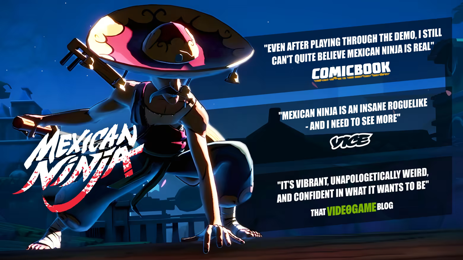 Fast chaotic and full of attitude, Mexican Ninja is a 2.5D roguelike beat 'em up where you carve through Narkuzas in Nuevo Tokyo with tight combos, wild spirit powers and Mexican Jutsus. Slice, dodge, upgrade and become the one and only Mexican Ninja.