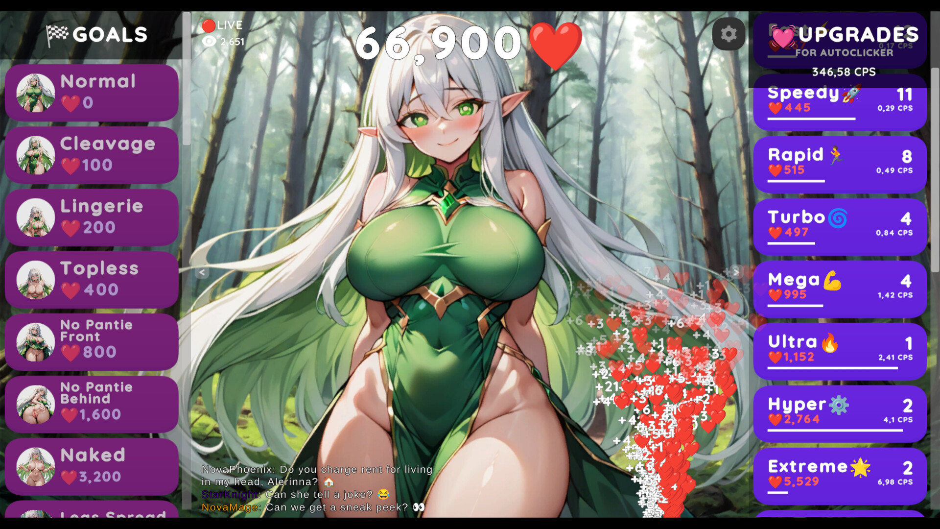 🔞 Step into a lewd adventure with Hentai Clicker: Alerinna is streaming! 🌿 Click to collect hearts, unlock magical outfits, and upgrade your skills in this addictive clicker game. Enjoy stunning fantasy anime art, explicit content, and immersive voice acting with your favorite elven beauty!