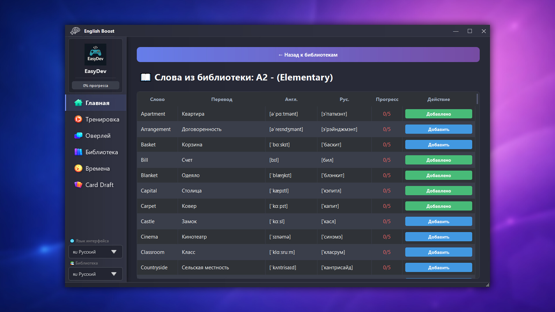 Слова появляются поверх любых приложений - и постепенно закрепляются в памяти.
