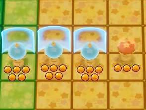 Players can blow the "Mofu" onto adjacent lanes!