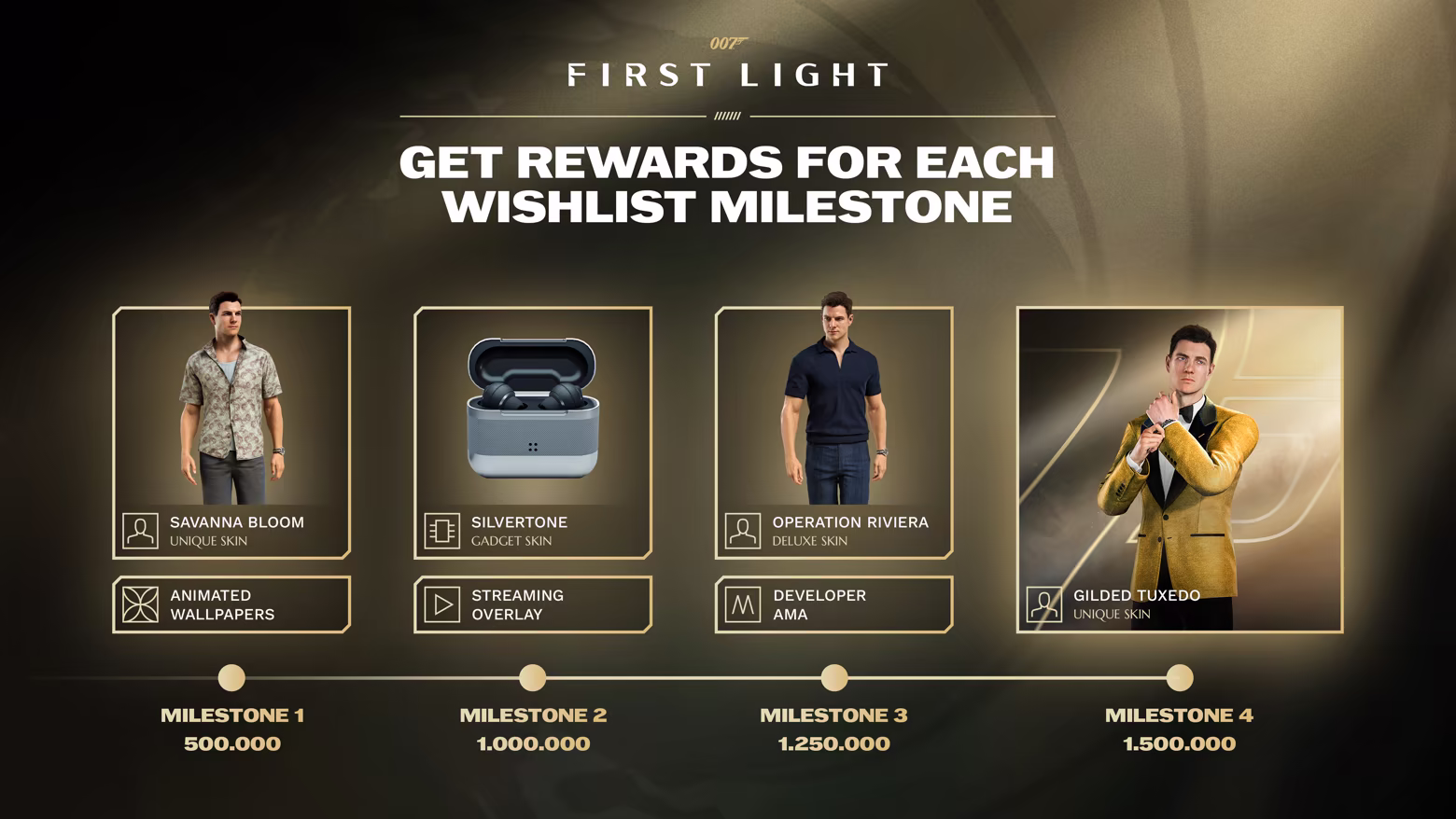 The mission is simple: rally together and unlock the wishlist milestones for 007 First Light. With every milestone reached, new in-game and community rewards are unlocked, adding style, sophistication, and a secret reward.