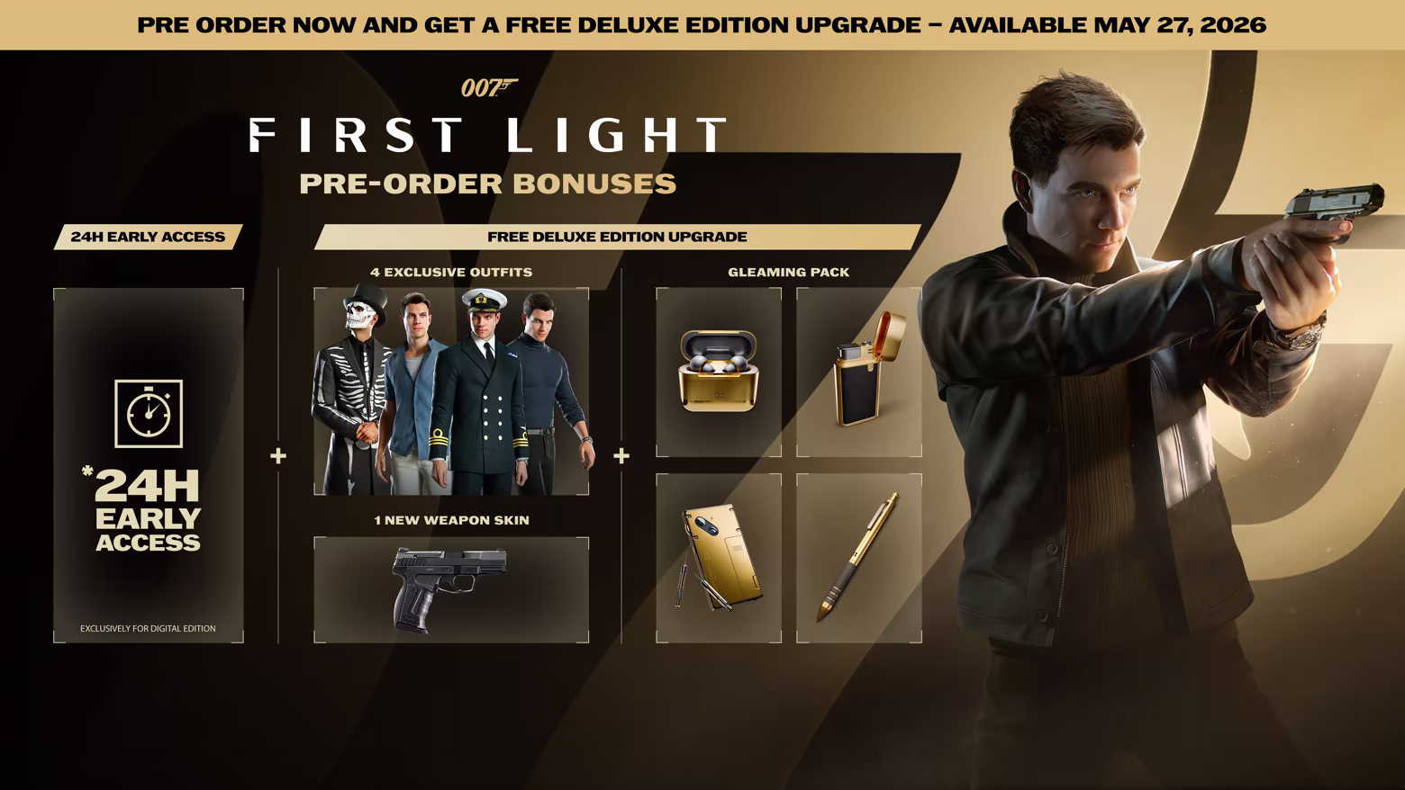 Pre-Order 007 First Light and receive the Deluxe Edition Upgrade and 24 hour early access for free: