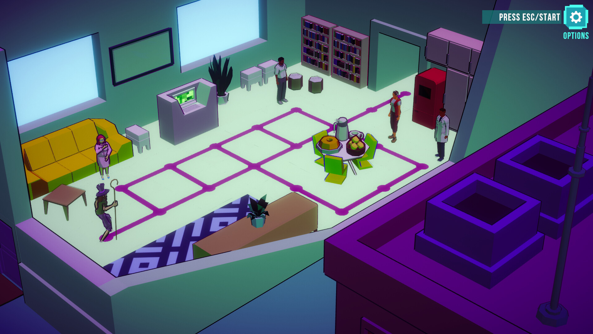 O.U.T.T. is a 3D turn-based puzzle-adventure game with a deep narrative, multiple endings, challenging puzzles with a retro futuristic cyber soulpunk aesthetic in a pre-dystopic future.