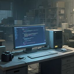 Hidden deep within the compound, he continues his obsession with tech.