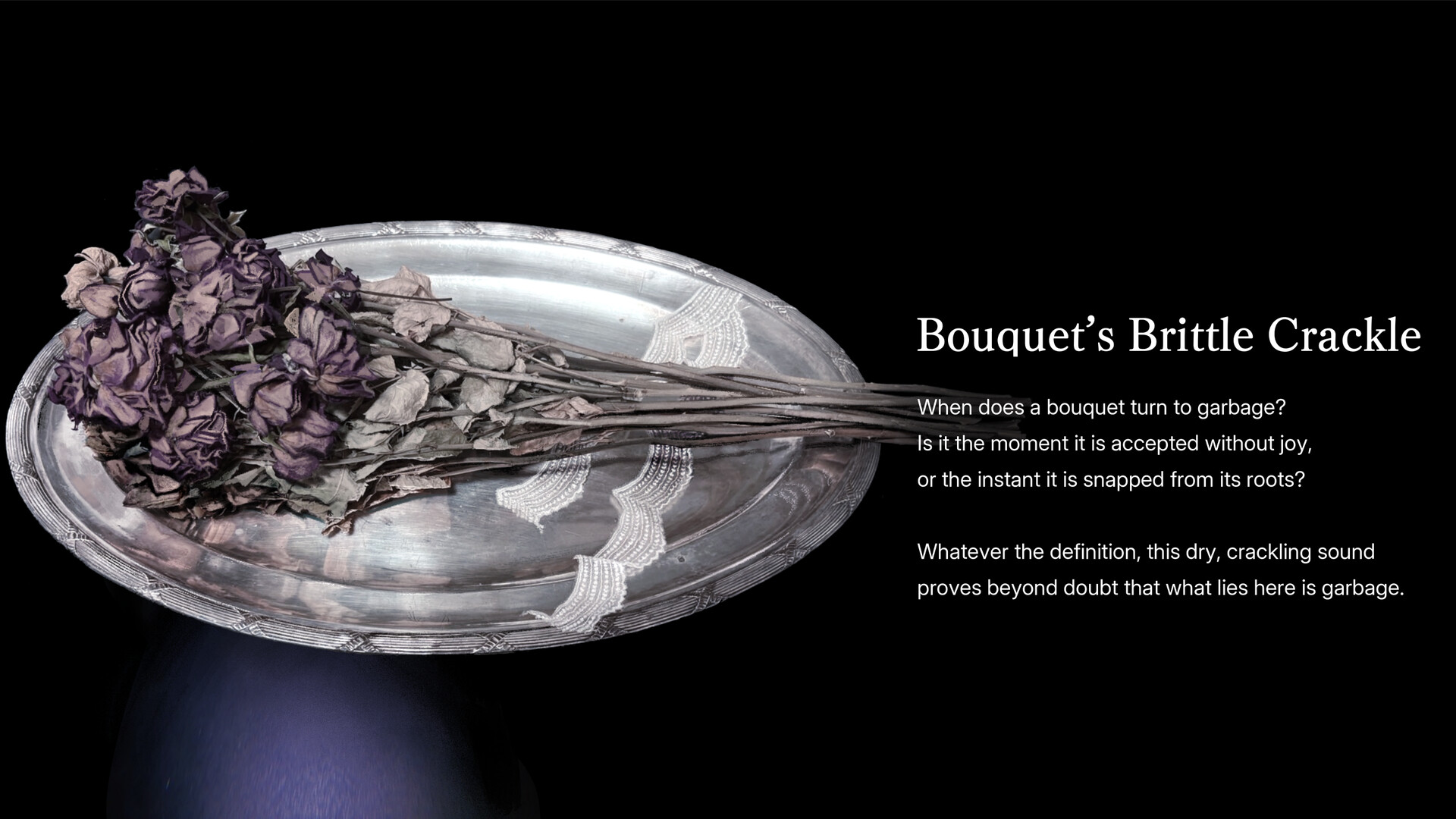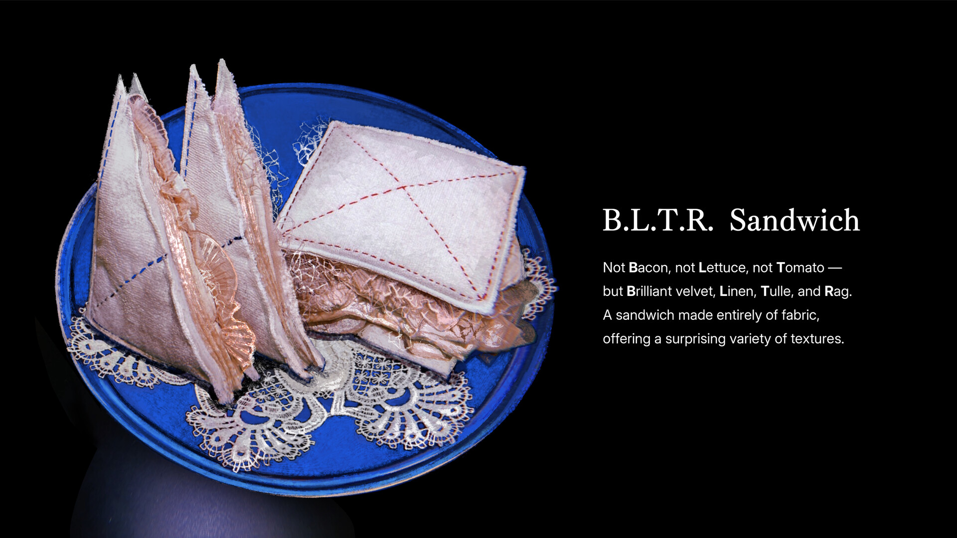photo-based stills made from inedible items—shoe soles, rags, wilted bouquets, and more—arranged so cleanly they might even look delicious.