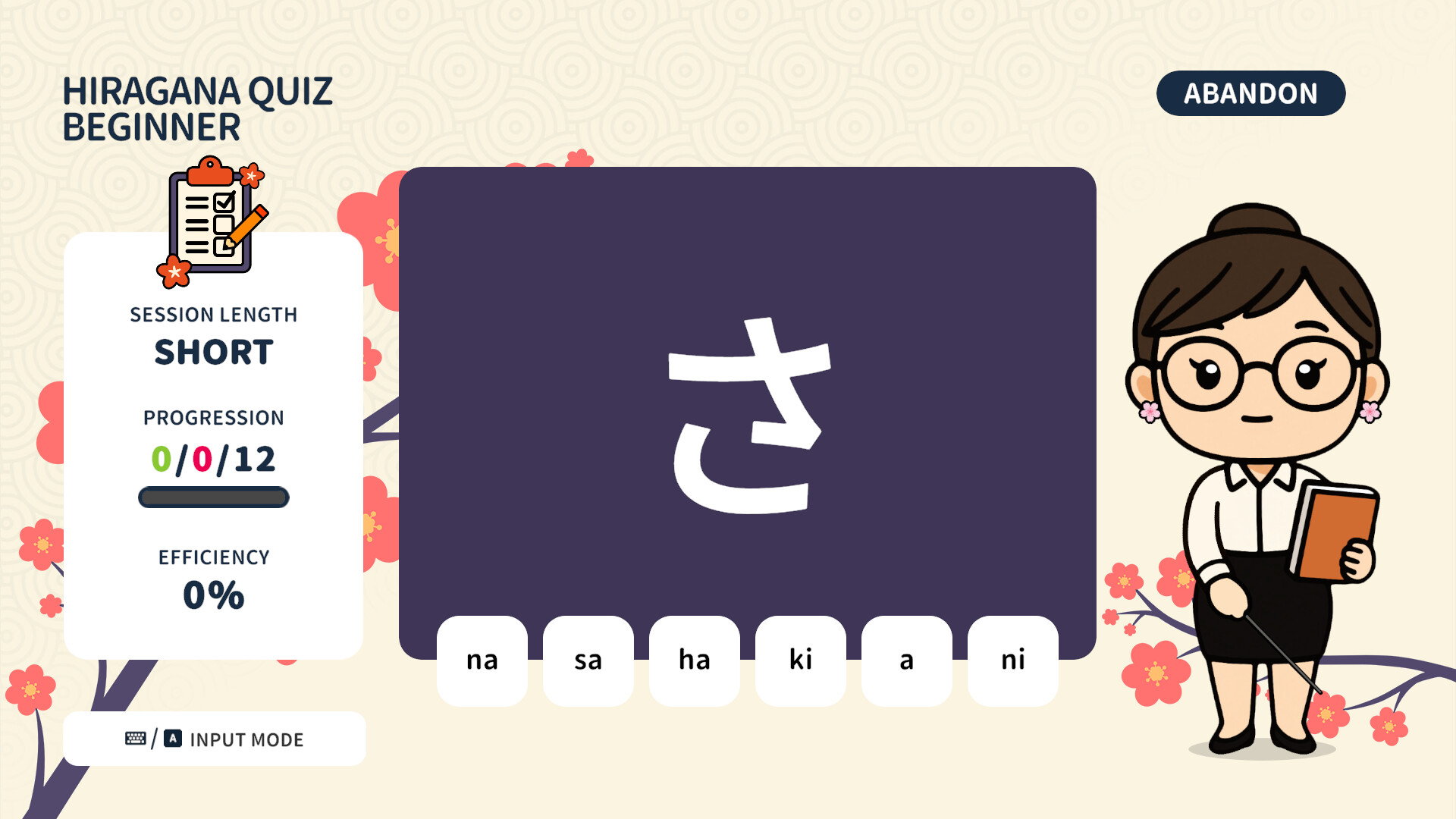 Drill beginner hiragana at your own pace.