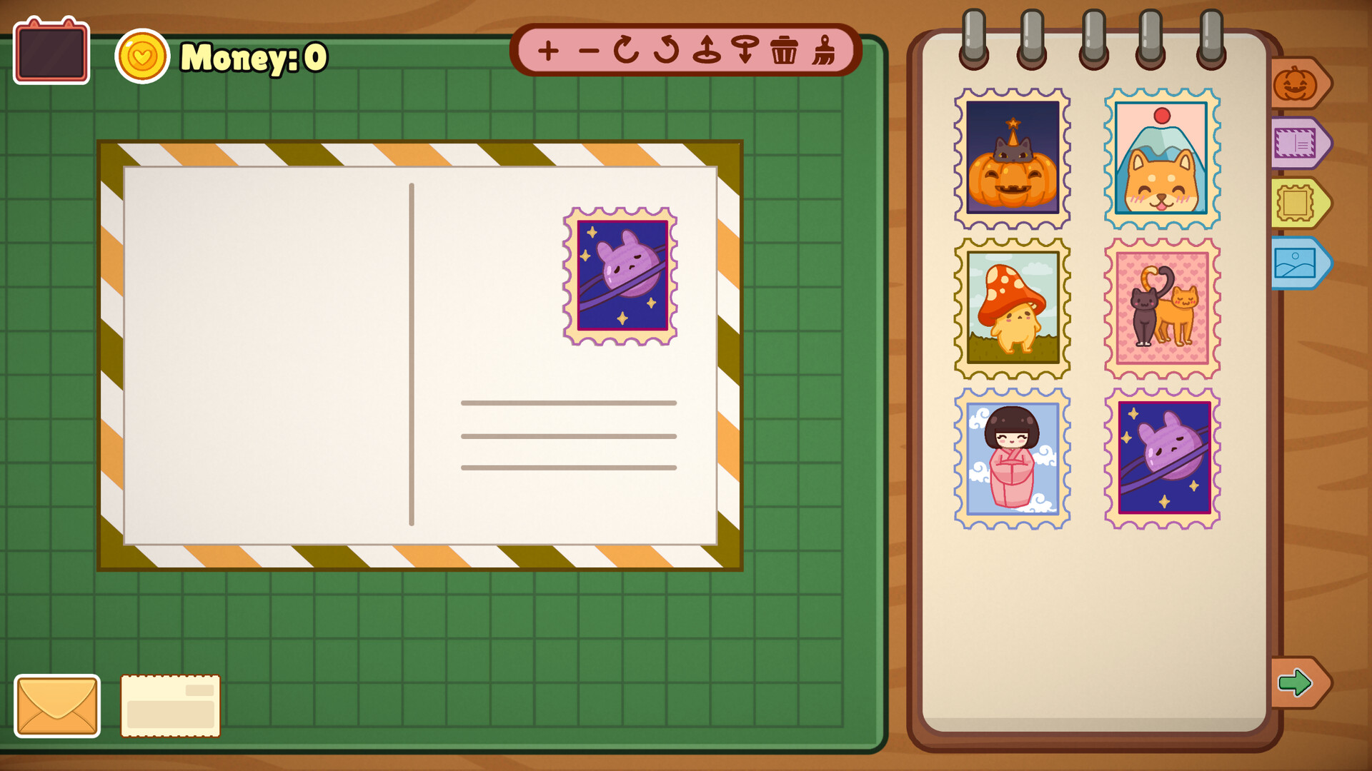 Craft and sell charming postcards to your customers in a relaxing sandbox full of color and creativity. Carefully Stamped is a cozy job simulator where you are a postcard designer. Take on new orders, craft the cutest mail, write a wholesome note and collect stamps to send your postcards 🎟️✉️